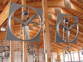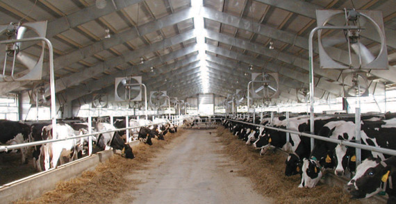 High capacity, extremely efficient and quiet dairy barn ventilation